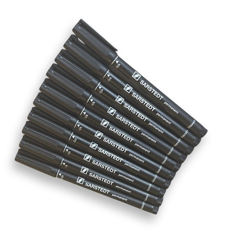Particularly suitable for writing on cryo-EM grid boxes and cryo storage vials, these markers feel and write like a pen. There's no offensive smell, and the cap closes with a nice reassuring click. The ink dries fast and is waterproof.