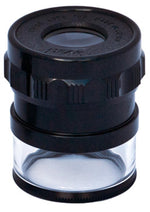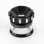 A wide-field magnifying glass of 15x magnifying power, combined with a graduated measuring sca...