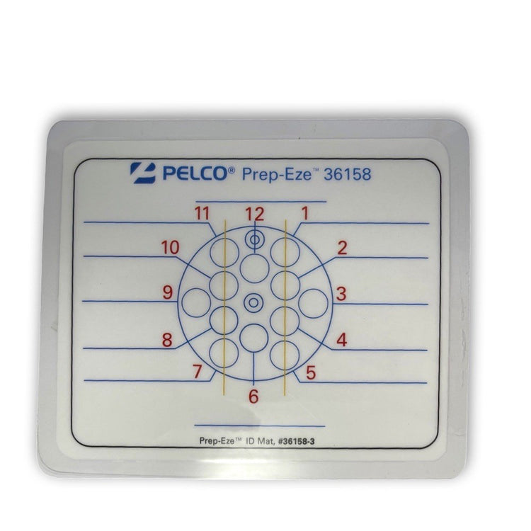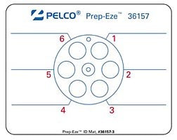 Numbered mats, available for both sizes, are plastic laminated to resist chemicals and may be written on with a marker. With the holder placed on the mat, easy identification of specific wells is possible.