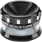 A wide-field magnifying glass of 15x magnifying power, combined with a graduated measuring sca...