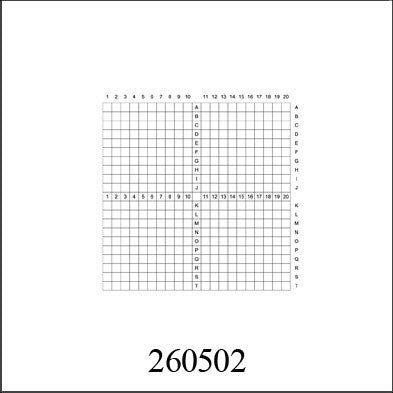 20 x 20 grid of 0.5mm squares | Indexed 1-20 along top, A-T down side and on center cross, 18mm round |