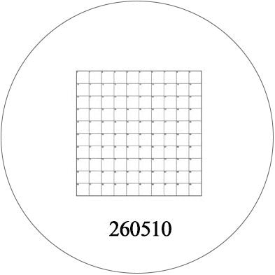 10 x 10 grid of 1mm squares | Each square indexed 0-99, 18mm round |