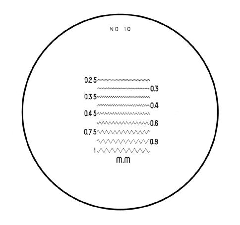 Scale reticle for peak measuring magnifiers, 10x 35mm
