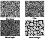 SEM tin on carbon disc resolution standards, wide magnification range