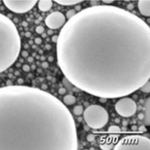 Dispersion of tin spheres, the majority being within the size range of 10nm to 100nm, on a car...