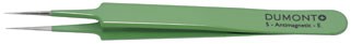 Blue Epoxy-coated (Inox 02) and green epoxy-coated (non-magnetic stainless steel) style 5, super thin tips. (Note: Tips are not coated). The Dumont Electronic Grade is well finished, with points matching precisely.